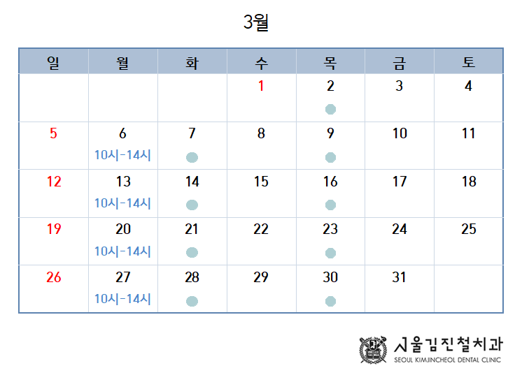 3월 1일은 삼일절로 휴진입니다.